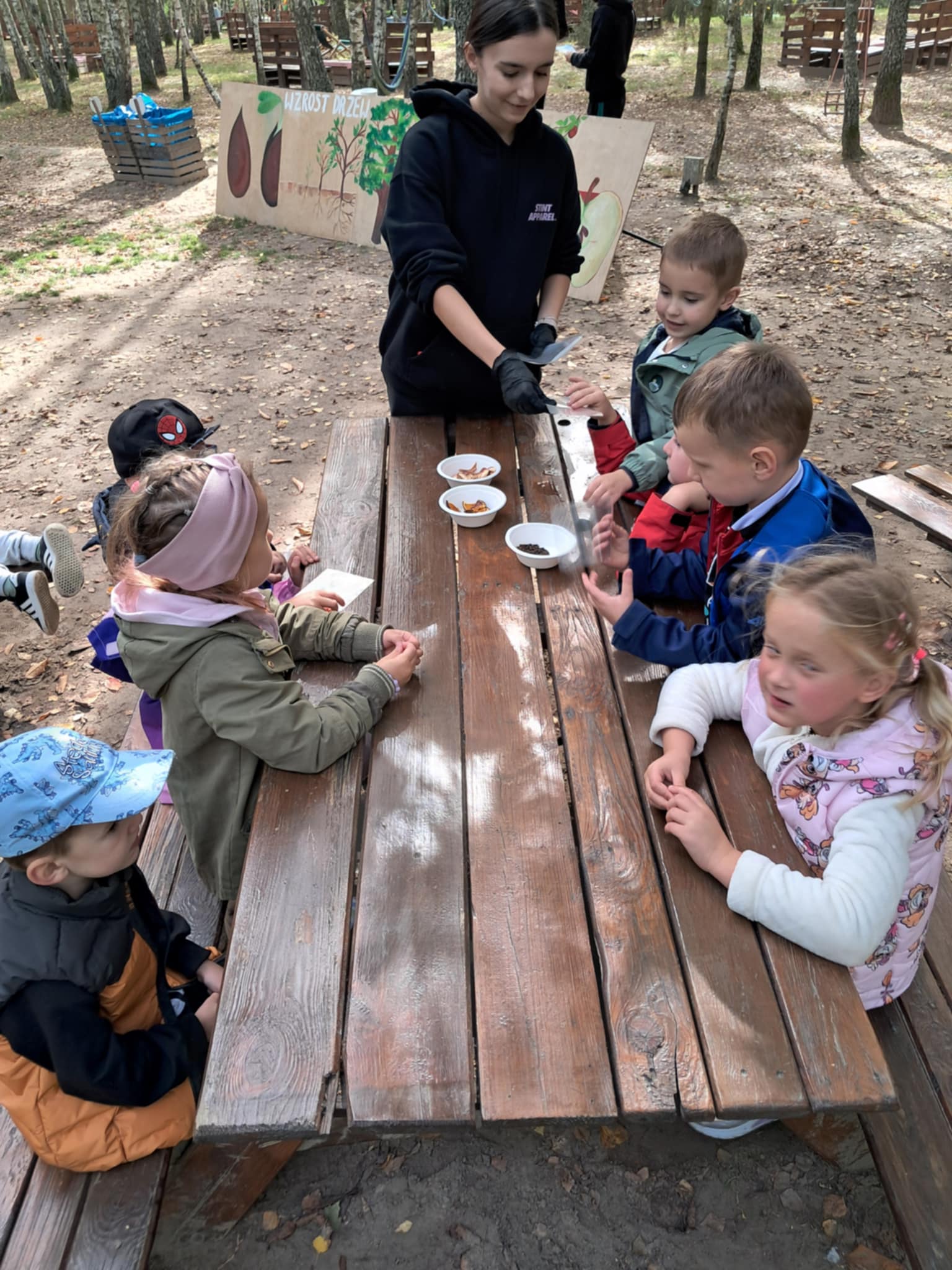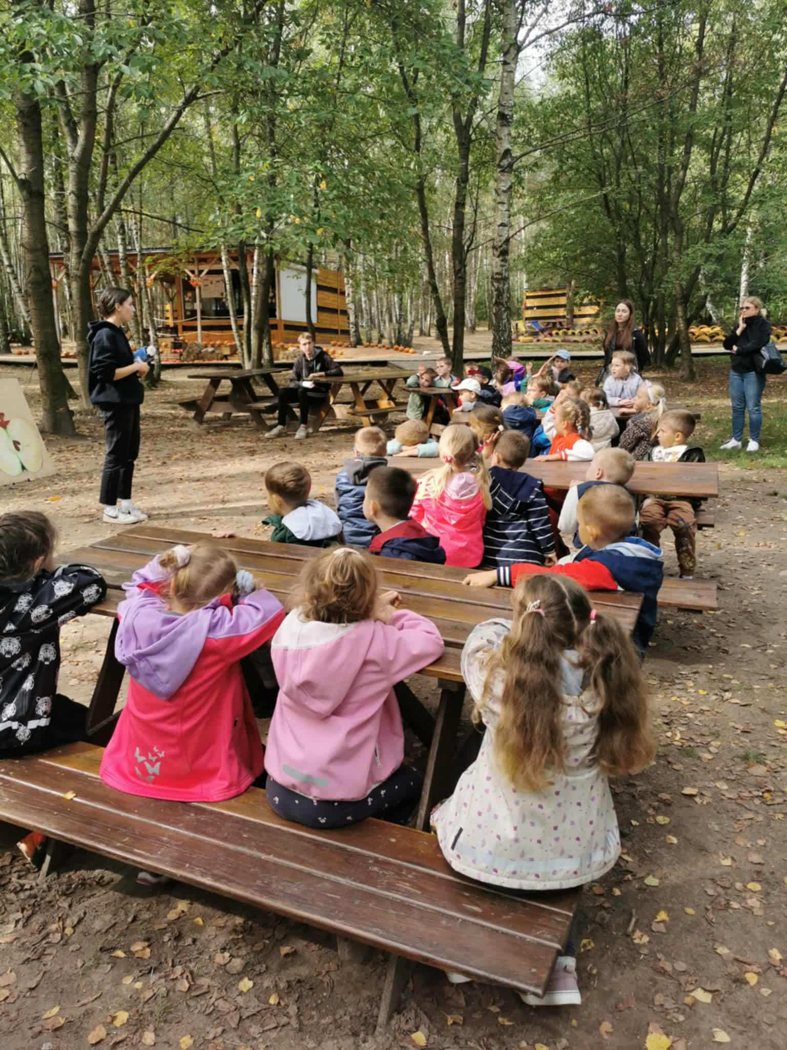 Przedszkolaki z grupy „Motylków” oraz „Żabek” wybrały się na wycieczkę do Sadów Klemensa w Komorowie. Jest to miejsce, gdzie edukacja łączy się z zabawą. Przedszkolaki miały możliwość relaksu, sportu i dobrej zabawy na dużym terenie otoczonym pięknymi drzewami. Uczestniczyły w warsztatach, na których tworzyły zapachowe woreczki. Wycieczkę zaliczamy do udanych, pogoda również Nam dopisała.