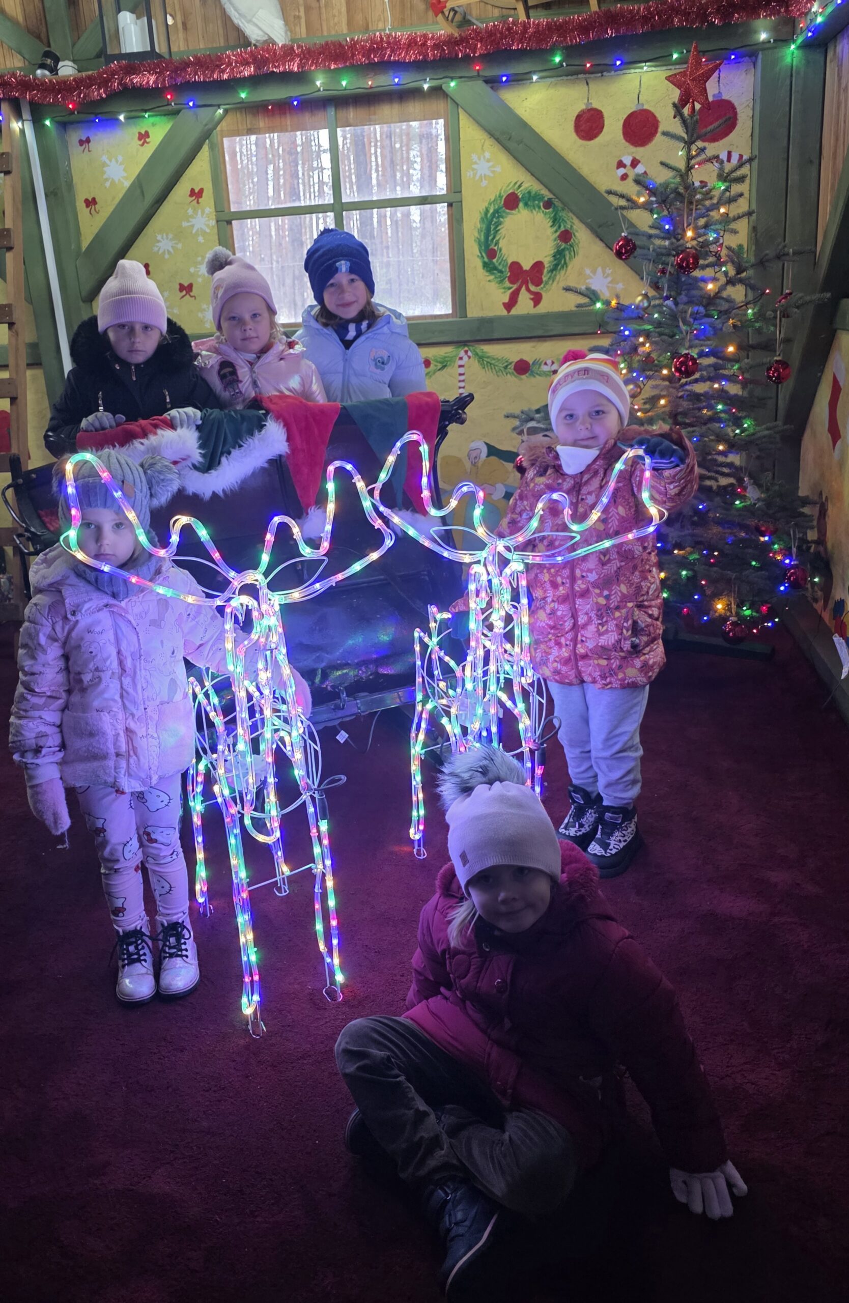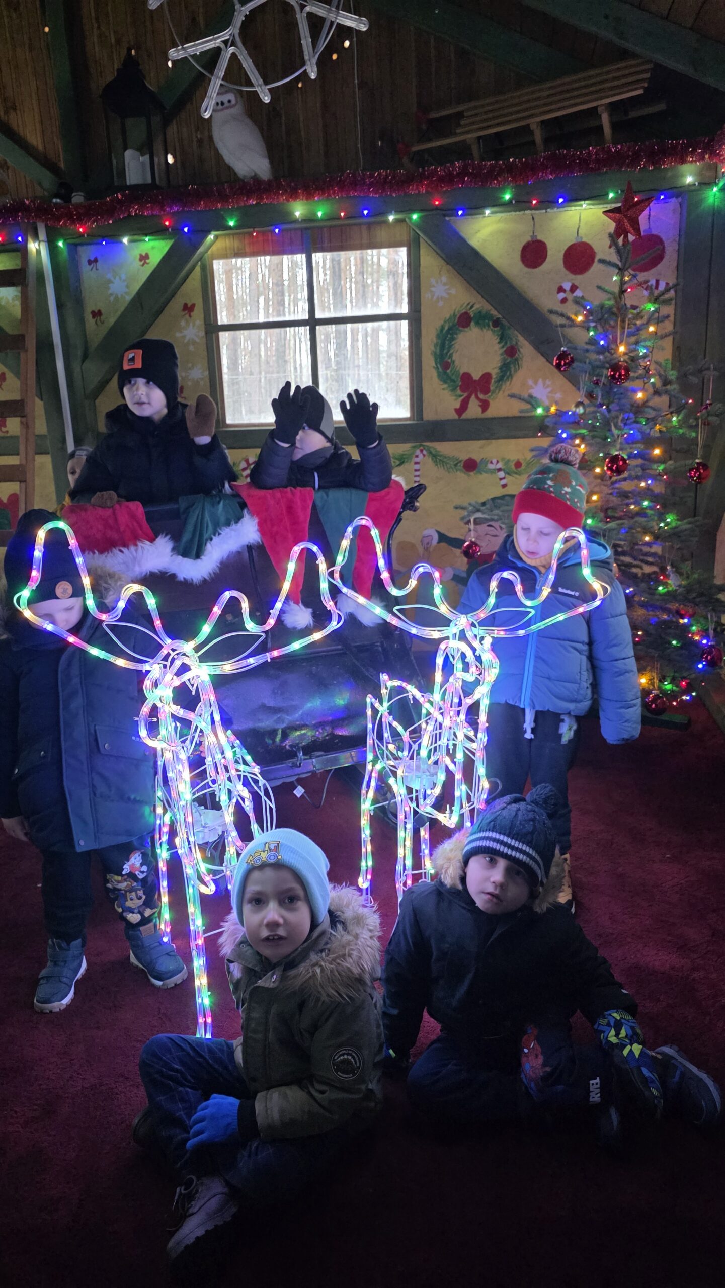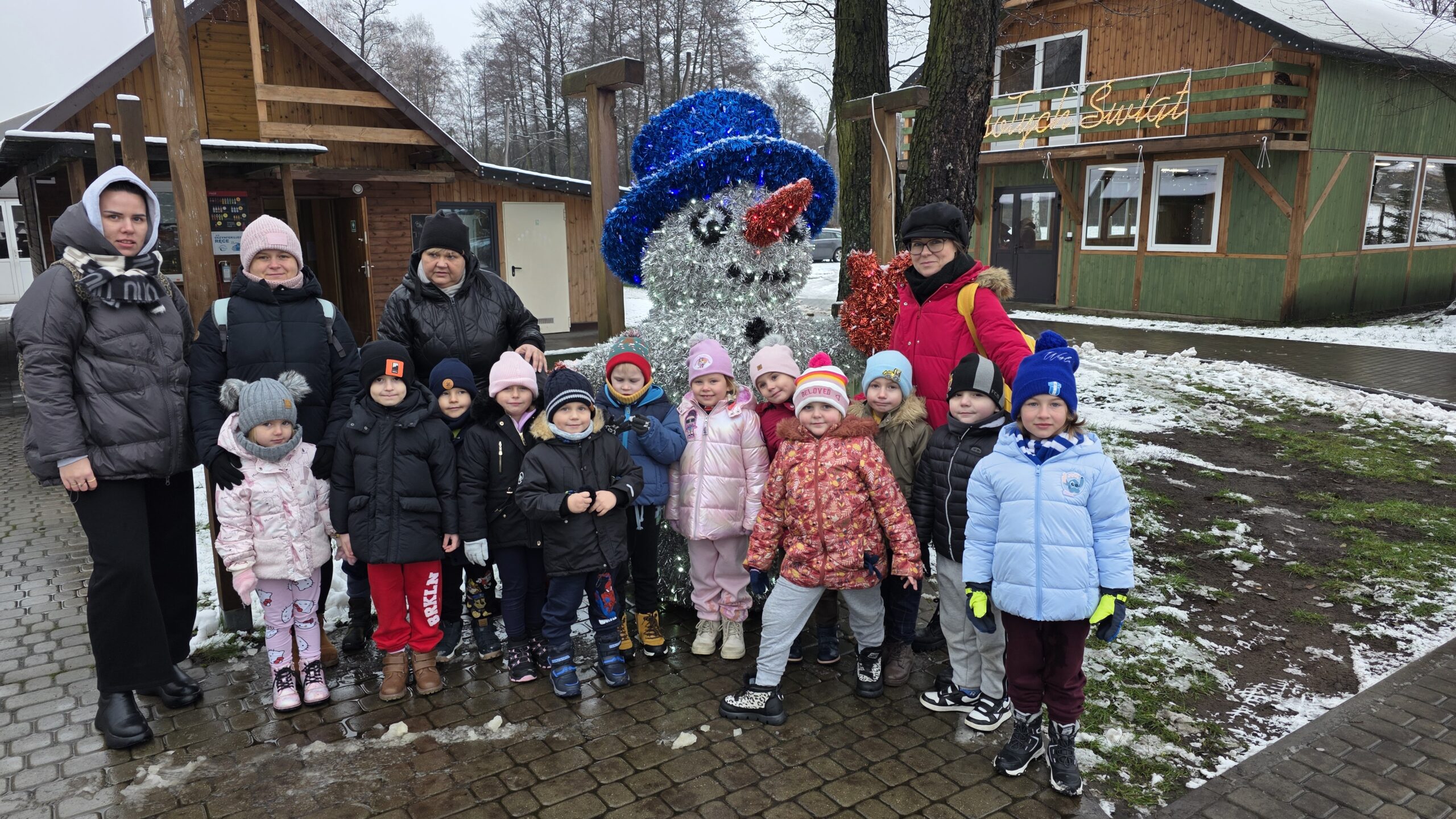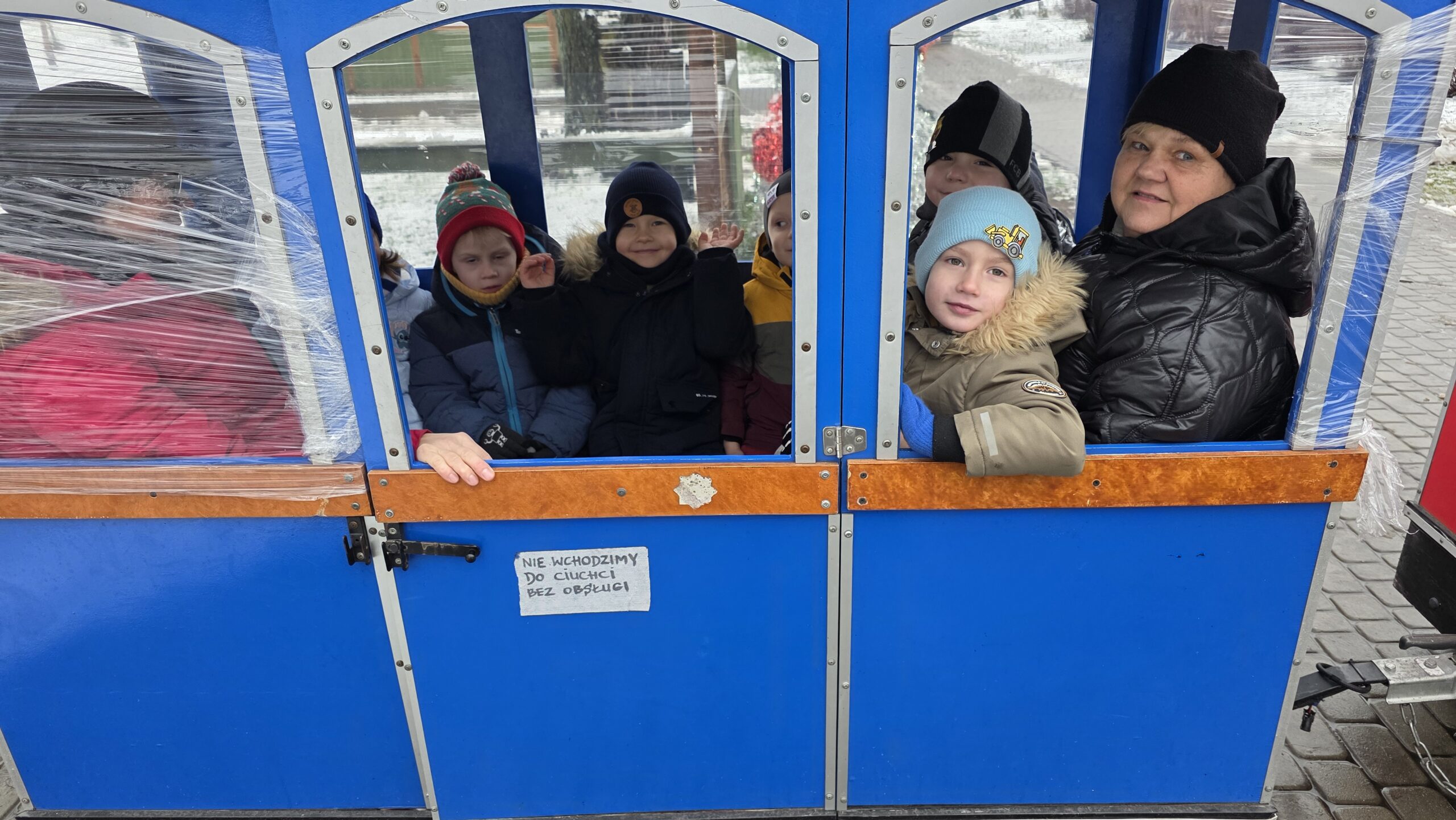 Przedszkolaki uczestniczyły w warsztatach, pt.: „Pierniczki i Wioska Świętego Mikołaja” w Budach Iłowskich. W ramach wydarzenia dzieci lepiły pierniczki, spotykały się z Mikołajem, jeździły świąteczną ciuchcią oraz miały okazję karmić zwierzęta.